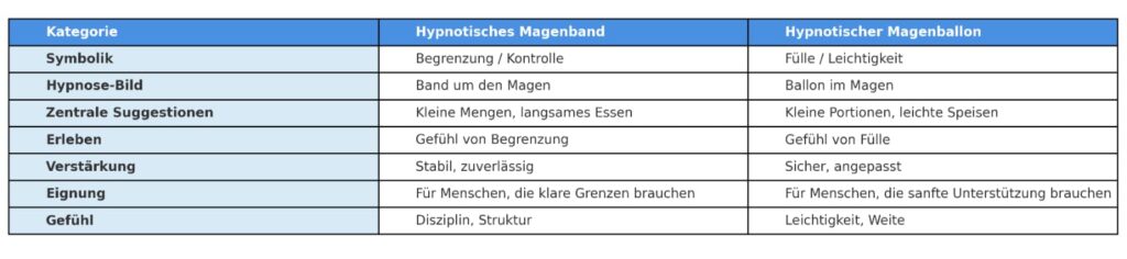 Durch gezielte Suggestionen „glaubt“ das Unterbewusstsein, dass der Magen verkleinert wurde. Das Resultat: