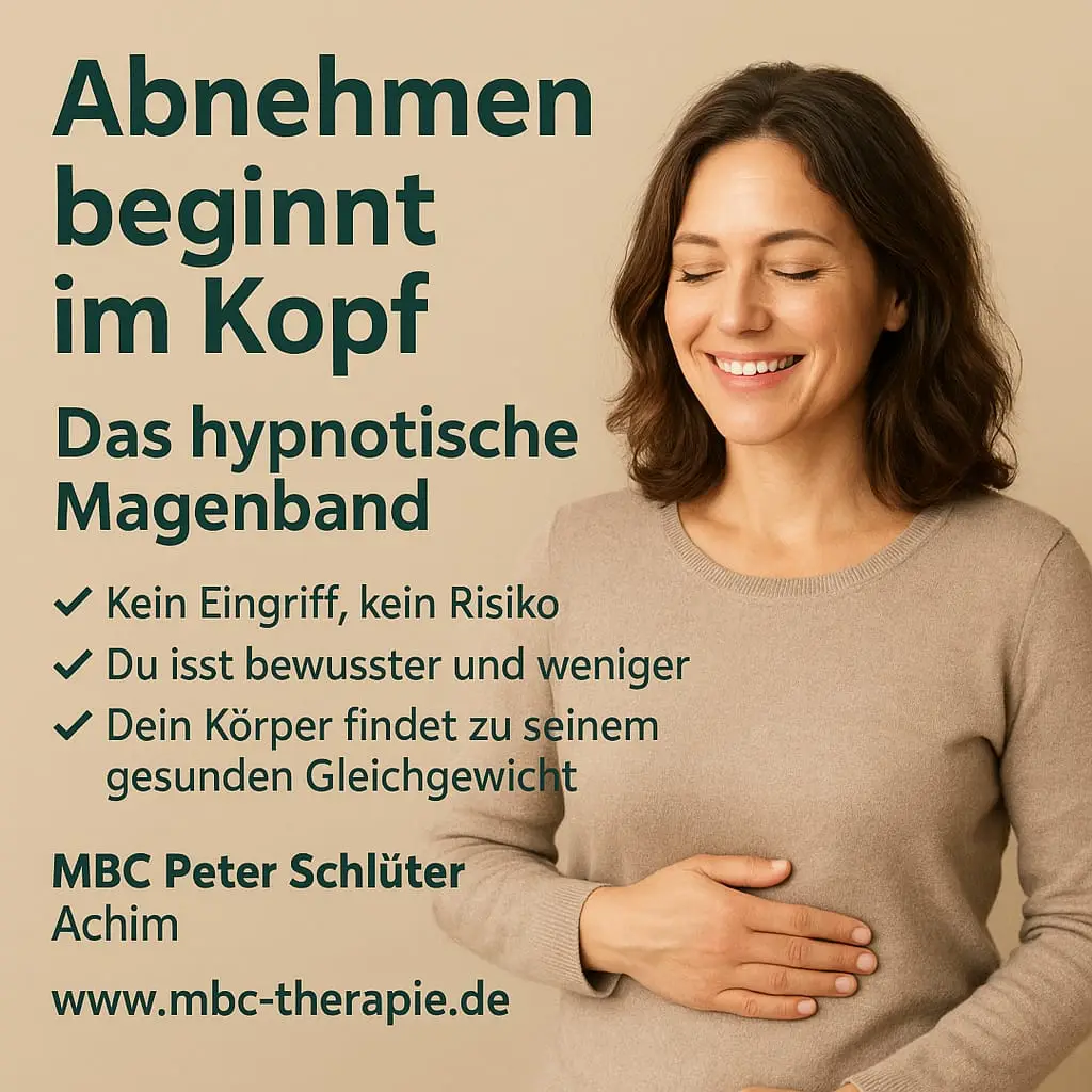 Eine sanfte Alternative bietet die Hypnose-Therapie mit dem virtuellen Magenband. Dabei wird dem Unterbewusstsein suggeriert, dass ein Magenband eingesetzt wurde – ganz ohne Operation, Skalpell oder medizinisches Risiko.